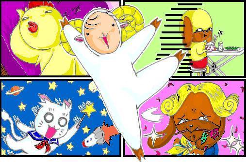 | 羊咩仔歷險記 第一話 羊咩仔買電子遊戲機 參加過Comic Fans 的新人獎﹐慘敗。T_T 第二話 羊咩仔做英雄 參加過新少年(香港)的新人獎﹐因為人在美國﹐ 結果我不知道﹐不過沒收到得獎通知﹐ 十成輸了。T_T |